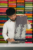 Soft Maheswari Silk Kalamkari Print Dark Grap With Dark Navy Blue Saree