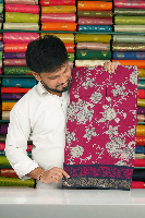 Soft Maheswari Silk Kalamkari Print Dark Megenta Pink With Dark Navy Blue Saree
