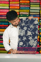 Soft Maheswari Silk Kalamkari Print Navy Blue With Megenta Pink Saree