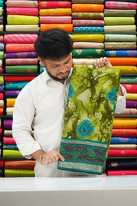 Soft Maheswari Silk Shibori Pattern Bandini Print Mehandi Green With Rama Green Saree