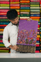 Soft Mal Chanderi Floral Digital Print Dark Lavender With Purple Saree