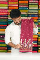 Soft Mal Chanderi Polka Dots Temple Border Dark Magenta Pink Saree
