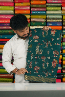 Soft Mal Chanderi Village Theme Print Dark Rama Green Saree