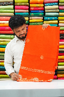 Soft Malai Silk Gold Zari Weaving Butti Bright Orange Saree