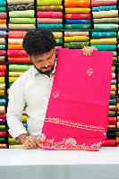 Soft Malai Silk Gold Zari Weaving Butti Pink Saree
