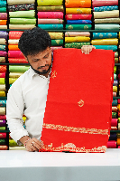 Soft Malai Silk Gold Zari Weaving Butti Red Saree