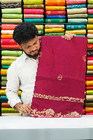 Soft Malai Silk Gold Zari Weaving Butti Wine Saree