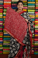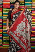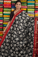 Soft Mangalagiri Silk Kalmkari Floral Print Black And Red Saree