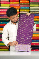 Soft Mashru Silk Checks Flower Butti Floral Border Dark Purple With Lavender Saree