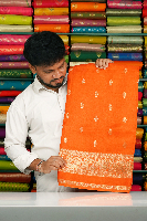 Soft Mashru Silk Gold Zari Butti With Kanchi Border Bright Orange Saree