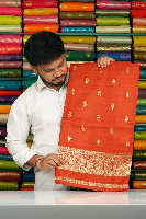 Soft Mashru Silk Gold Zari Butti With Kanchi Border Rust Saree