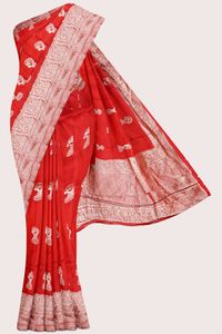Soft Mashru Silk Pecock And Jumki Design Red Saree