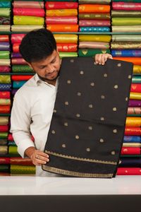 Soft Mashru Silk Zari Bentex Border Black With Red Saree