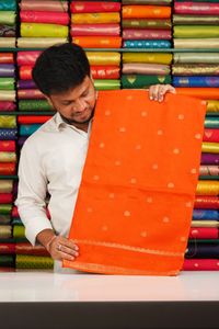 Soft Mashru Silk Zari Bentex Border Bright Orange With Pink Saree