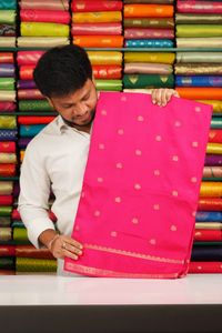 Soft Mashru Silk Zari Bentex Border Bright Pink With Purple Saree