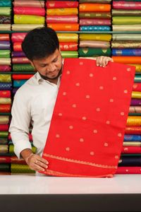 Soft Mashru Silk Zari Bentex Border Red With Dark Green Saree