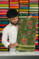 Soft Maslin Georgette Floral Digital Print Dark Green Saree