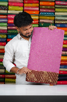 Soft Munga Crepe Silk Gold Zari Flower Butti Light Magenta Pink With Dark Maroon Saree
