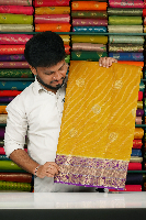 Soft Munga Silk Checks With Butti Dark Mustard Yellow With Purple Saree