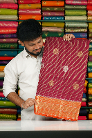 Soft Munga Silk Checks With Butti Magenta Pink With Orange Saree