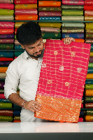 Soft Munga Silk Checks With Peacock Butti Pink With Orange Saree