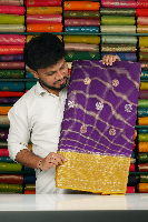 Soft Munga Silk Checks With Peacock Butti Purple With Yellow Saree