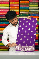 Soft Munga Silk Flower Butti With Floral Creeper Border Dark Purple Saree