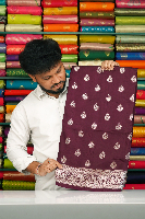 Soft Munga Silk Flower Butti With Floral Creeper Border Dark Wine Saree