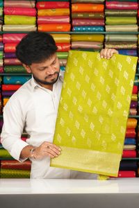 Soft Munga Tussar Silk Floral Creeper Border With Butti Pesara Green Saree