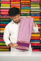 Soft Mysore Crepe Silk Flower Butti Gap Border Lavender With Purple Saree