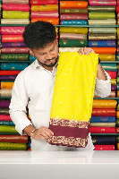 Soft Mysore Crepe Silk Flower Butti Gap Border Lemon Yellow With Chocolate Saree