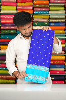 Soft Mysore Crepe Silk Flower Butti Gap Border Royal Blue With Coppersulphate Blue Saree