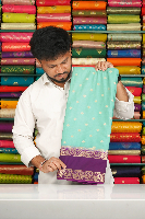 Soft Mysore Crepe Silk Flower Butti Gap Border Teal Green With Purple Saree