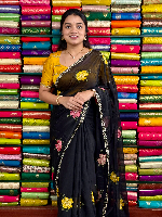 Soft Rangoli Silk Embroidary Work Black With Yellow Saree