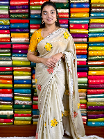 Soft Rangoli Silk Embroidary Work Cream With Yellow Saree