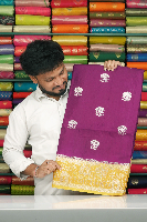 Soft Russian Crepe Georgette Zari Flower Butti Bright Magenta Pink With Yellow Saree