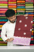 Soft Russian Crepe Georgette Zari Flower Butti Dark Maroon With Lavender Saree