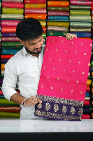 Soft Russian Crepe Silk Gold Zari Leaf Butti Bright Pink With Purple Saree