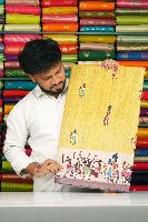 Soft Semi Tussar Silk Printed Pattern Yellow With Beige Saree