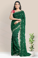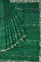 Soft Shimmer Tissue Flower Design Dark Green With Pink Saree