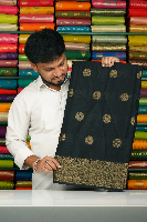 Soft Silk Banarasi Weaving Floral Butti Black Saree