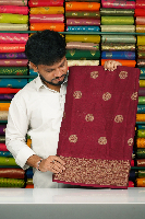 Soft Silk Banarasi Weaving Floral Butti Dark Wine Saree