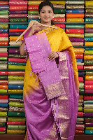 Soft Silk Doriya Lines Lilac With Peach Saree