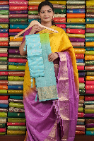 Soft Silk Doriya Lines Sky Blue With Parrot Green Saree