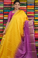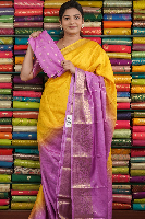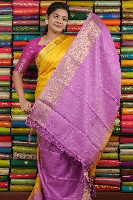 Soft Silk Doriya Lines Yellow With Lilac Saree