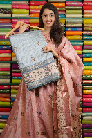 Soft Silk Elephant Border Light And Dark Powder Blue Saree