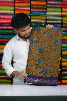 Soft Silk Floral Digital Print Dark Mustard Yellow With Purple Saree