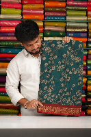 Soft Silk Floral Kalamkari Print Rama Green With Maroon Saree