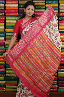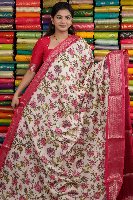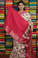 Soft Silk Floral Print Half White And Pink Saree