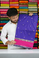 Soft Silk Gap Border Gold Zari Butti Navy Blue With Pink Saree